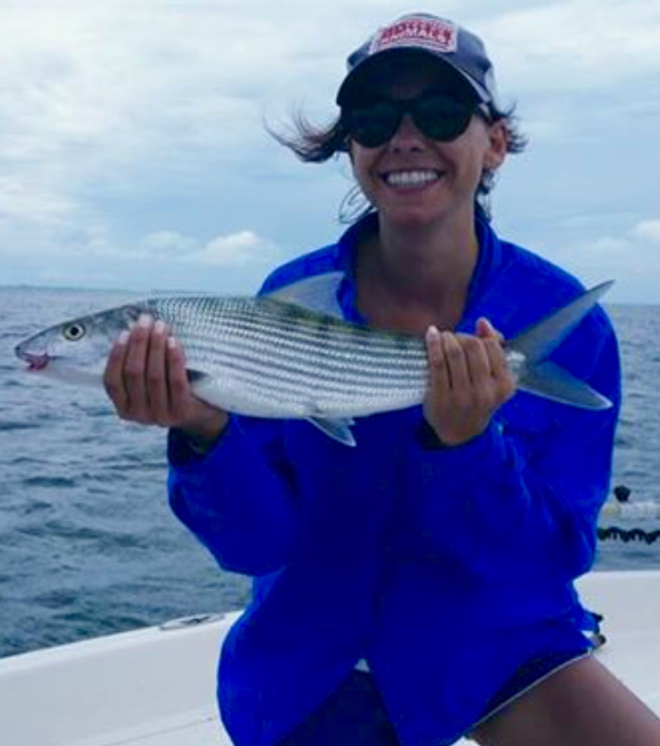 Ashley and Capt. Tony with award for winning bonefish division in the Casting For Cats Backcountry Fishing Tournament